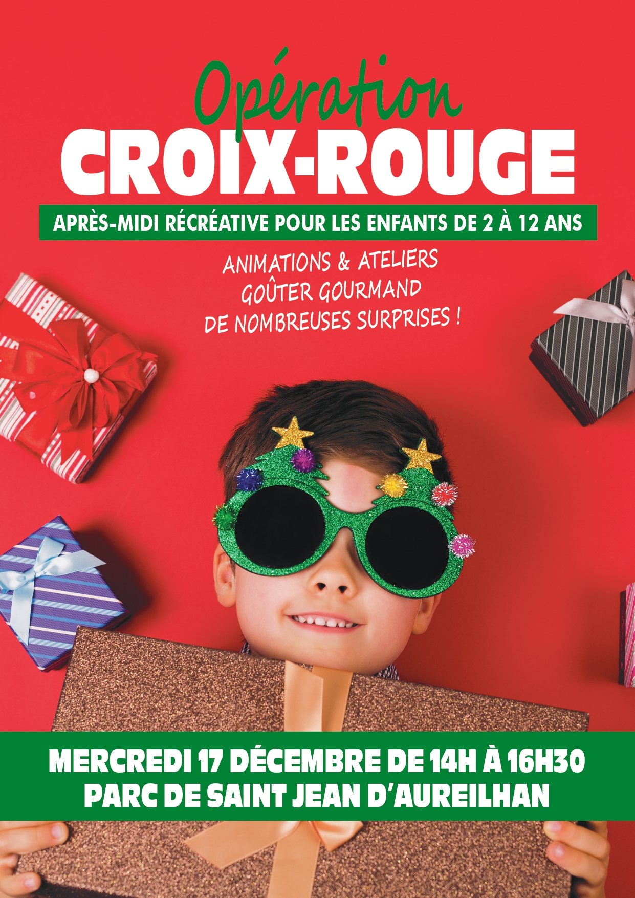 La Ville et la Croix-Rouge organisent un après-midi festif spécialement dédié aux enfants de 2 à 12 ans, le mercredi 17 décembre, de 14h à 16h30, au Parc de Saint-Jean d’Aurelian.